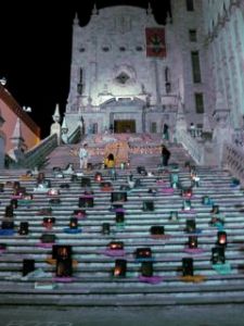 Festival Internacional Cervantino. Every October. The program usually comes out in June. Click here. Nineteen days of art, music, drama. dance, and literature. Performances and exhibits in numerous venues. Street performers of all sorts, too. Something for everyone. And some weekends it seems everyone got the message. The two streets through Guanajuato’s historic center become so packed with pedestrians that police close them to traffic. Youth stay up all night in the plazas. Some locals hibernate or leave town. But this small town girl from Missouri cherishes every minute.